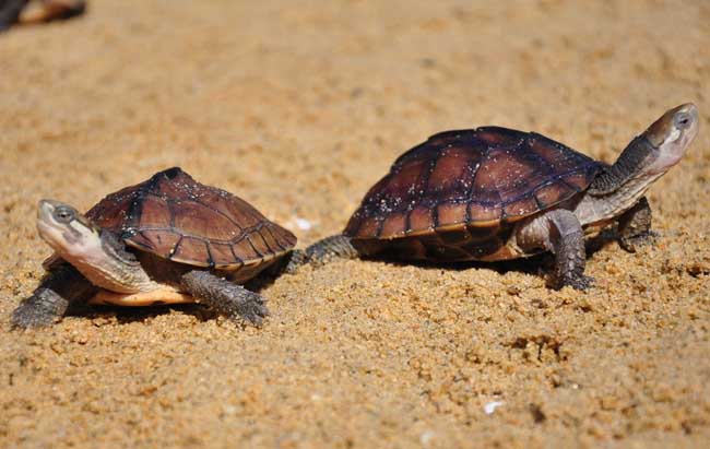 12、猪鼻龟:猪鼻龟也叫大洋洲猪鼻龟,别名飞河龟,是两爪鳖科下两爪鳖属的唯一一种。其分布局限于澳大利亚北部,伊里安查亚南部和新几内亚南部,为两爪鳖科内硕果仅存的一个品种。2004年,首次登上世界自然基金会公布十大濒危物种的前十名。