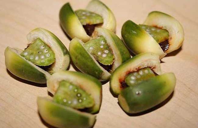 ②在食用新鲜槟榔时要把先把鲜槟榔切成一片片的薄片,然后再把扶留叶铺好,涂抹一些灰浆,最后把槟榔片放在上面,用扶留叶把它们包裹起来,再放在嘴里慢慢的嚼食。