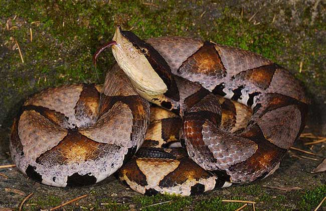 1、环境:百步蛇主要栖息在海拔400~700米的常绿和落叶混交林中,夏季喜欢在山坞的水沟一带活动,对生境条件的要求是阴凉通风有树有水,也在茶园、农田、柴堆内活动,能上树,也能进入人房,冬季多在树根形成的天然洞或旧鼠洞中越冬。