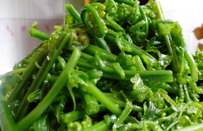 2、蕨菜含有草酸,鲜品或干品在食前应先在沸水中浸烫一下,以清除其表面的黏质和土腥味。