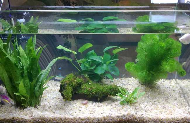 3、鱼缸布局要合理,一般情况下,总是高大的品种植于箱中后部,矮小的品种植于前部,叶宽而大的品种植于中部。同时还要与箱中的山石配合得当,疏密有致。水草不可种得太多,否则既有碍观赏,又因夜间耗氧多,影响观赏鱼的生长。