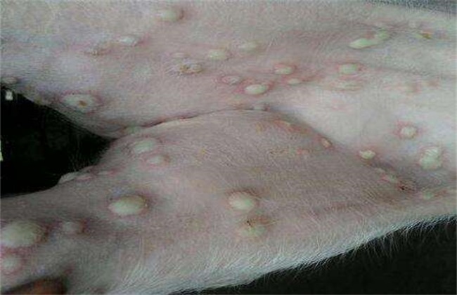 由痘苗病毒或是猪痘病毒感染后就会在住的身体上出现褐色的丘疹和水疱,脓疱,初期发生较少,后期发生极多,遍布全身,小猪感染发病,先从下腹和后肢开始产生红色水疱,后来向其他地方蔓延,病部中间结痂凹陷扩展,有些流脓。
