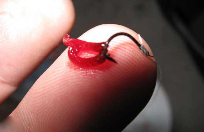 3、用红虫直接挂钩钓鱼,一定要用公虫不用母虫!公虫肉头厚,挂上不走形,母虫肉头薄,一挂一股水,不久钩上就会只剩一层皮。