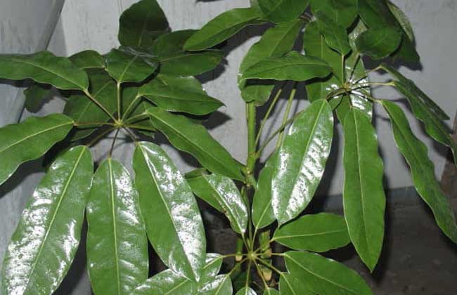大叶发财树别称昆士兰伞木、昆石兰遮树等,为五加科鹅掌柴属常绿乔木。高可达30~40米。茎杆直立,少分枝,嫩枝绿色。叶为掌状复叶,小叶数随树木的年龄而异。小叶片椭圆形,先端钝,有短突尖,叶背淡绿色,叶柄红褐色。原产澳大利亚及太平洋中的一些岛屿,适于客厅与办公室等各种地方置放,我国南部热带地区亦有分布。