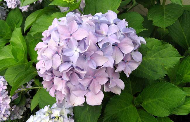 5、绣球花叶片肥大,枝叶繁茂,需水量较多,在生长季的春、夏、秋季,要浇足水分使盆土经常保持湿润状态。夏季天气炎热,蒸发量大,除浇足水分外,还要每天向叶片喷水。绣球的根为肉质根,浇水不能过分,忌盆中积水,否则会烂根。