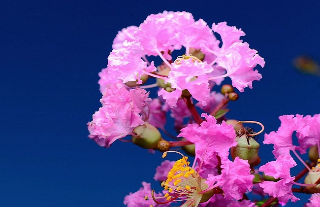 花期长达3个月,即6~9月。开花时正当夏秋少花季节,花期长,故有“百日红”之称,又有“盛夏绿遮眼,此花红满堂”的赞语。