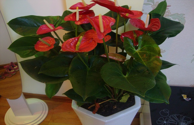 前面我提到红掌是生性阴凉的植物,如果长时间的把它放在不恰当的地方,不能放在强光线下暴晒,这样会很快使叶子枯黄叶子。