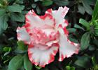 2、毛白杜鹃,半常绿灌木。枝条较粗壮,叶披针形;花白色,3~4朵簇生枝顶,重瓣,花型大,树势旺盛。