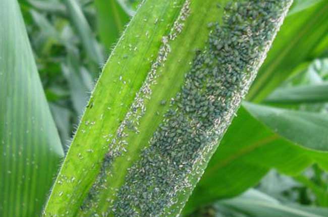 玉米蚜广泛分布于玉米产区,可为害玉米、小麦、高梁、水稻及多种禾本科杂草。苗期以成蚜、若蚜群集在心叶中为害,抽穗后为害穗部,吸收汁液,妨碍生长,还能传播多种禾本科谷类病毒。属同翅目,蚜科。俗名 麦蚰、腻虫、蚁虫。分布在全国各地。