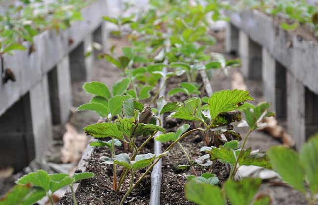 2、定植时间:无土栽培草莓定植时间是根据顶芽花芽分化程度来确定的,一般育苗圃50%植株通过花芽分化即为定植适期。在生产实践中,如果短缩茎出现明显弓背、叶片基部叶柄上出现耳叶时,可认为达到了花芽分化。在9月中旬定植最为适宜,翌年1月成熟上市,不仅实现了反季节销售,丰富了冬春果品市场的花色品种,而且时逢元旦、春节等传统节日,市场需求旺,产品售价高。