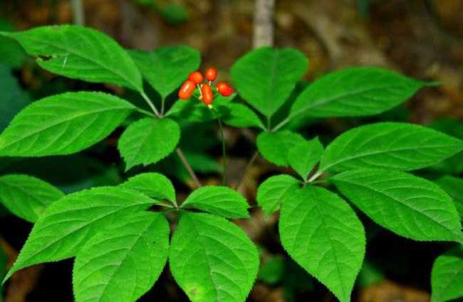 人参为多年生草本植物,喜阴凉、湿润的气候,多生长于昼夜温差小的海拔500~1100米山地缓坡或斜坡地的针阔混交林或杂木林中。由于根部肥大,形若纺锤,常有分叉,全貌颇似人的头、手、足和四肢,故而称为人参。古代人参的雅称为黄精、地精、神草。人参被人们称为“百草之王”,是闻名遐迩的“东北三宝”(人参、貂皮、鹿茸)之一,是驰名中外、老幼皆知的名贵药材。
