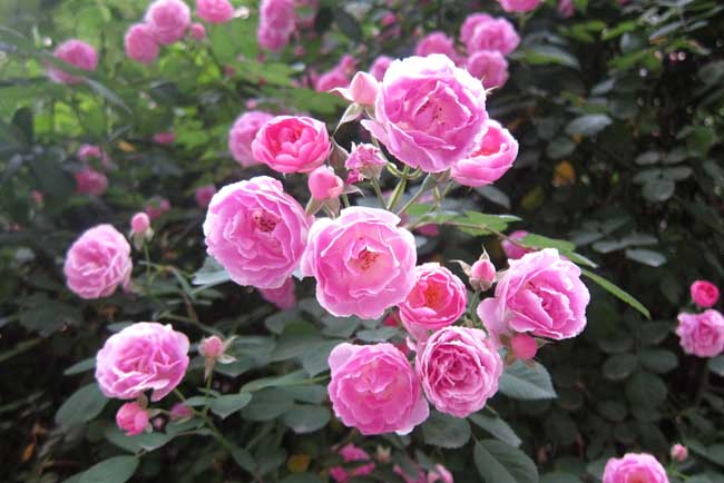5、地被月季:地被月季是一种茎蔓非常低矮贴地而生的匍匐地面生长的月季,落地生根、易繁殖、生长快、抗性强、耐贫脊、耐荫、耐干旱,而且有很强的抗寒能力等许多优点,叶小、色深绿,十分光泽且抗病能力强,成活以后无须细致养护、管理。