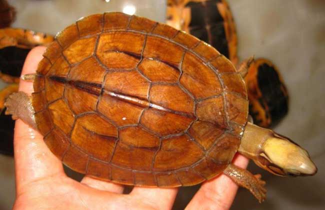 3、交配管理:钱龟生长缓慢,一般要6龄以上性腺才能成熟,开始交配。人工繁殖时,应挑选6龄以上、身体强壮者作为亲龟,以雌雄龟3:1的比例合池饲养,让龟自由交配。金钱龟多在9至10月的傍晚五点至六点,气温为20至25摄氏度时开始交配。待翌年6月,水温上升到25摄氏度左右时,雌龟开始产卵,产卵一直持续到7月底或8月初才结束。全期共产卵3至4次,每次产3至4枚卵。