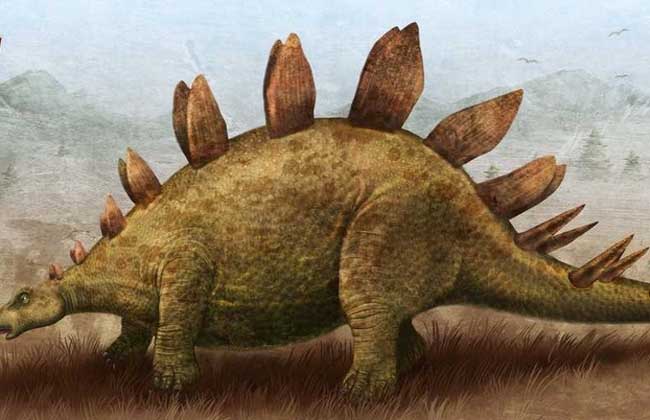6、剑龙:剑龙为一种巨大的草食性恐龙,一种生存在侏罗纪晚期的食草性动物,背上有一排巨大的骨质板,以及带有四根尖刺的危险尾巴来防御掠食者的攻击,大约12公尺长和3.5公尺高,重达6吨,居住在平原上,并以群体游牧的方式和其它(如梁龙)等食草动物一同生活。